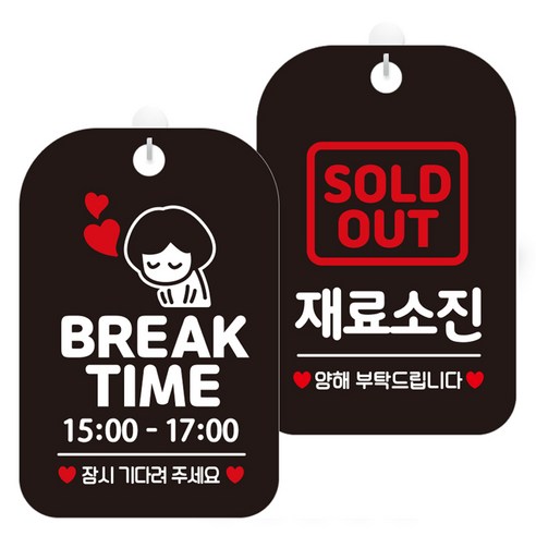 제제데코 안내문구 걸이용 안내판 블랙 30cm 2종 세트, 1세트, HA090브레이크타임시간기재여자5 + HA096재료소진양해