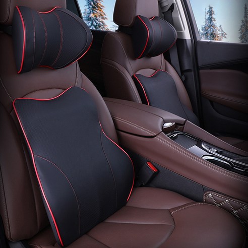 차량용 프리미엄 가죽 3D 메모리폼 목쿠션 Sleepro 00376, 블랙레드, 1개 차량용목쿠션